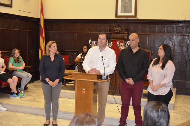 El alcalde les ha felicitado por los resultados obtenidos recientemente. En concreto los equipos infantil y cadete han sido ganadores de la final autonómica y el equipo juvenil ha sido ganador de uno de los ocho sectores nacionales por lo que disputará del 6 al 10 de mayo la fase final del campeonato de España que tendrá lugar en Málaga. El alcalde y las delegadas han obsequiado a los equipos con la insignia de la ciudad.