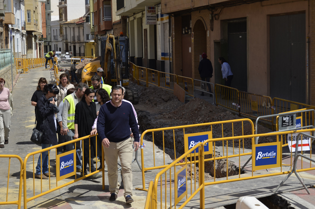 Las obras de reurbanización de la calle Valencia que está realizando el Ayuntamiento de Sagunto avanzan a buen ritmo, según han podido comprobar esta mañana el alcalde del Ayuntamiento de Sagunto, Sergio Muniesa; la delegada de Patrimonio y Contratación, Laura Casans; y el edil de Mantenimiento, José Luis Martí, que han visitado la zona acompañados por miembros de la asociación de vecinos. Los trabajos fueron adjudicados por la Junta de Gobierno a la empresa Grupo Bertolín S.A., con un presupuesto de 615.987 euros (IVA incluido). En estos momentos, se está haciendo la canalización para los colectores de pluviales y alcantarillado y se está realizando un seguimiento arqueológico que ha permitido el hallazgo de dos esqueletos de época musulmana.